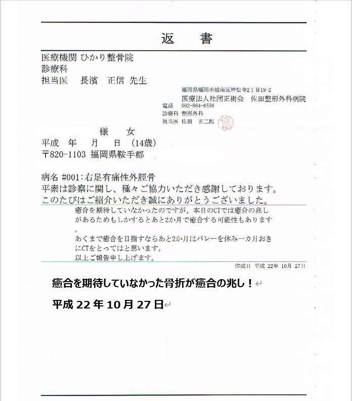 古い骨折が約6か月で100%癒合した症例