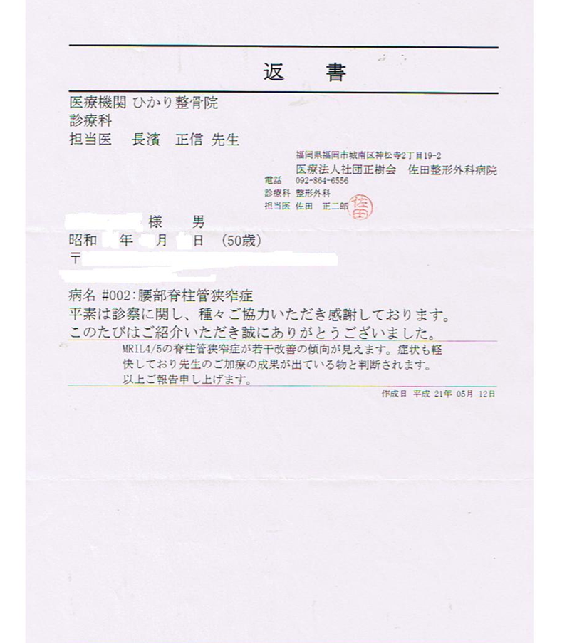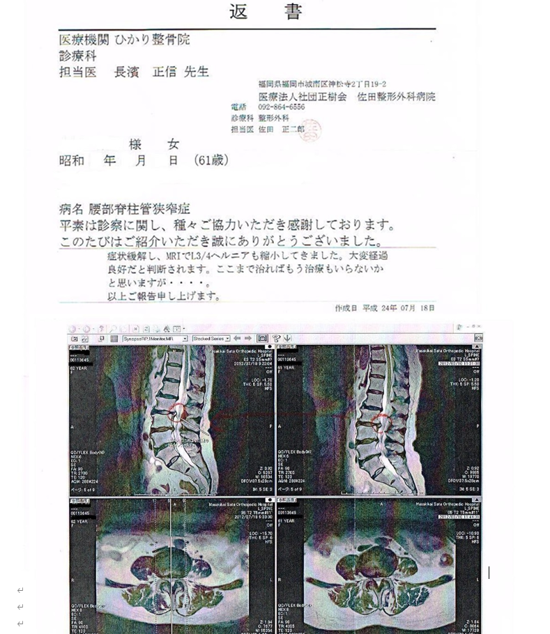 脊柱管狭窄症が4カ月でもう治療もいらないと、整形外科の先生に画像で確認して頂いた症例
