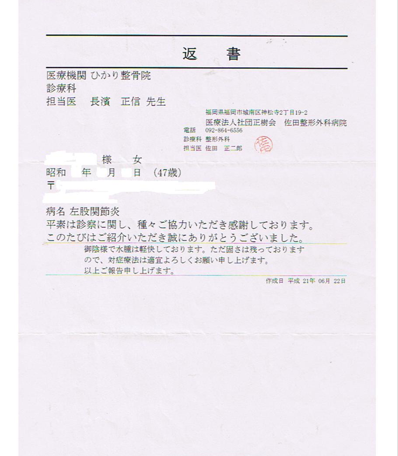 47歳 女 左股関節炎 看護師